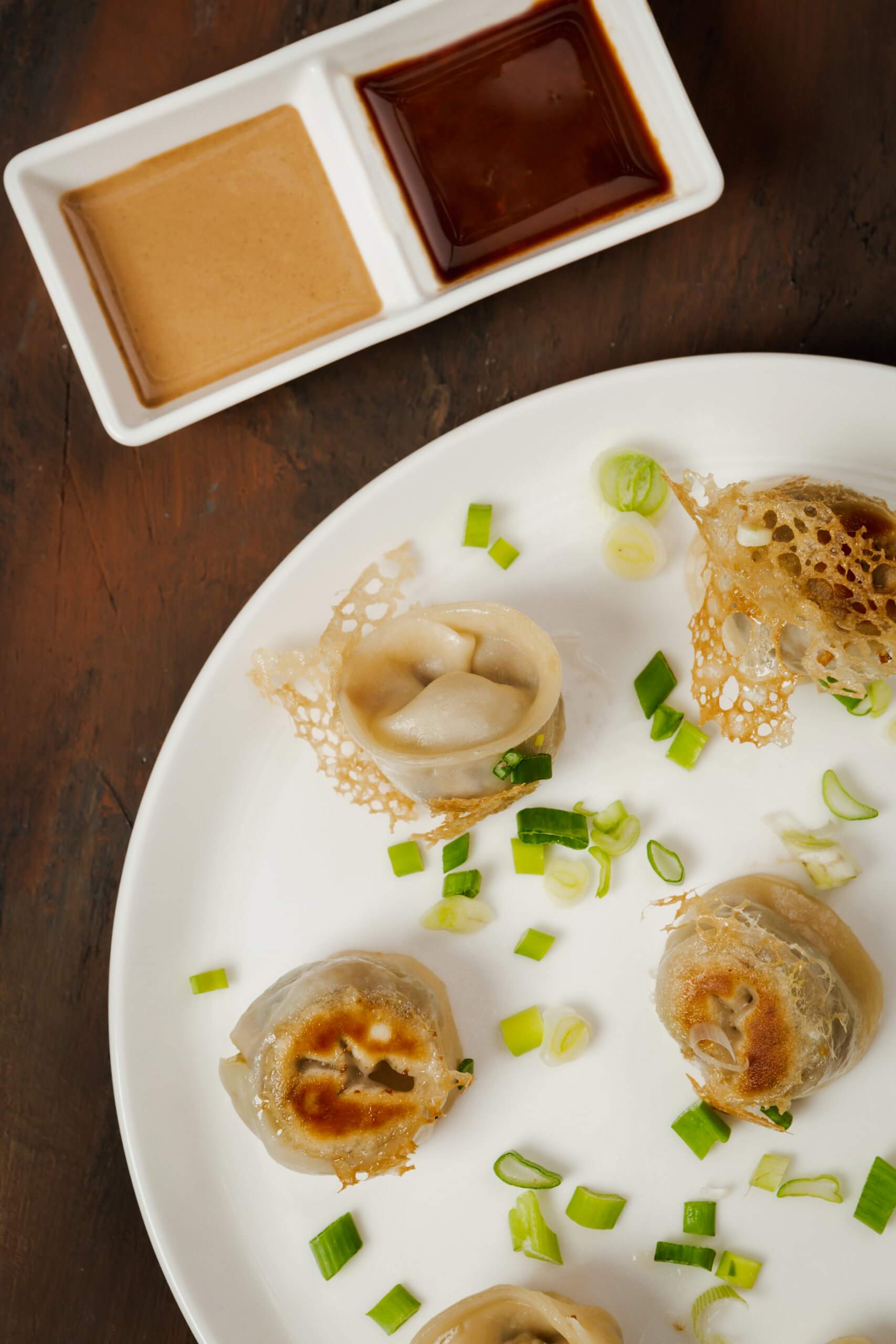 GyozaIndulge in our pan-fried dumplings, offering a delightful choice between lamb and vegan options with oyster mushrooms.